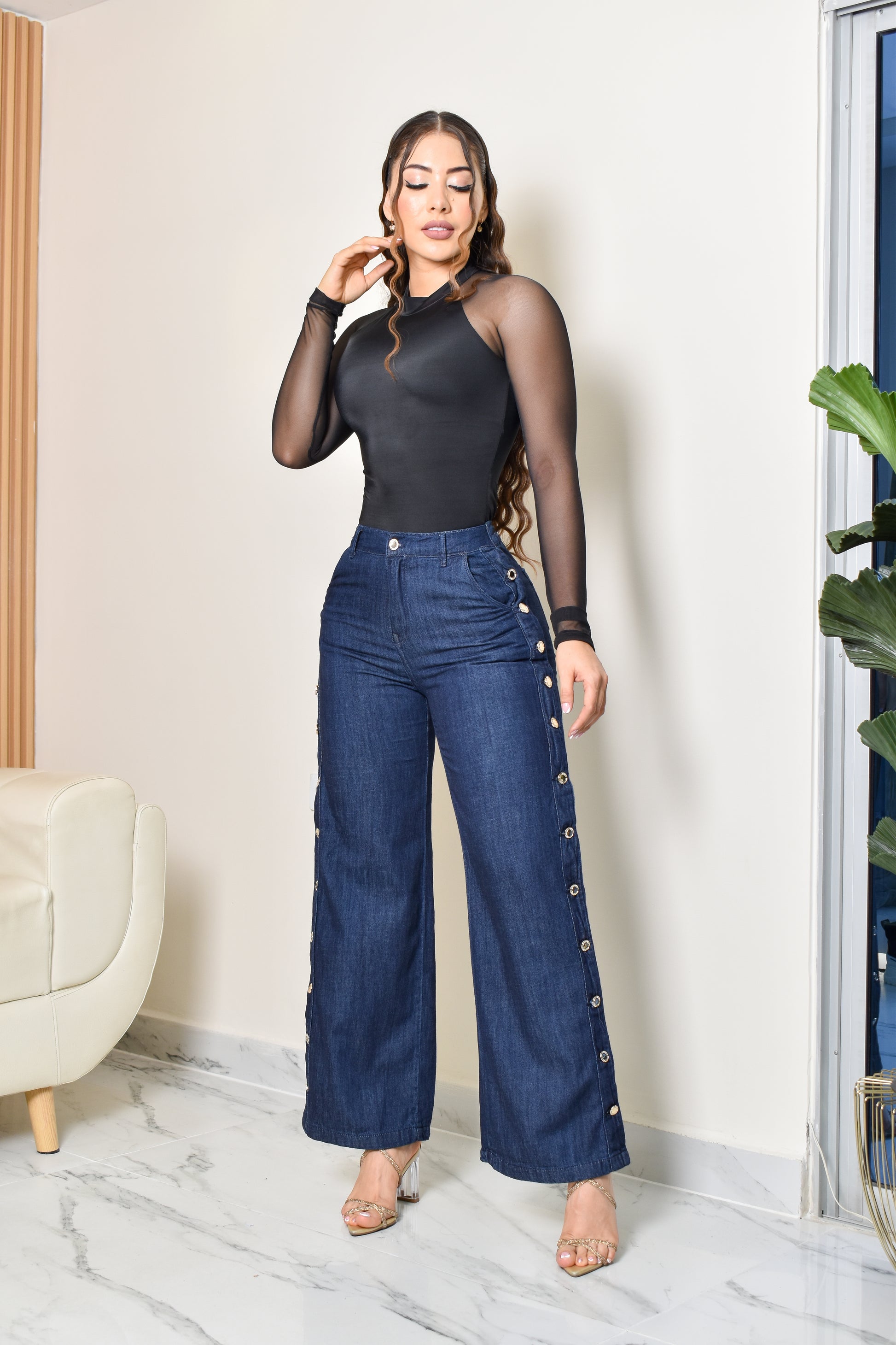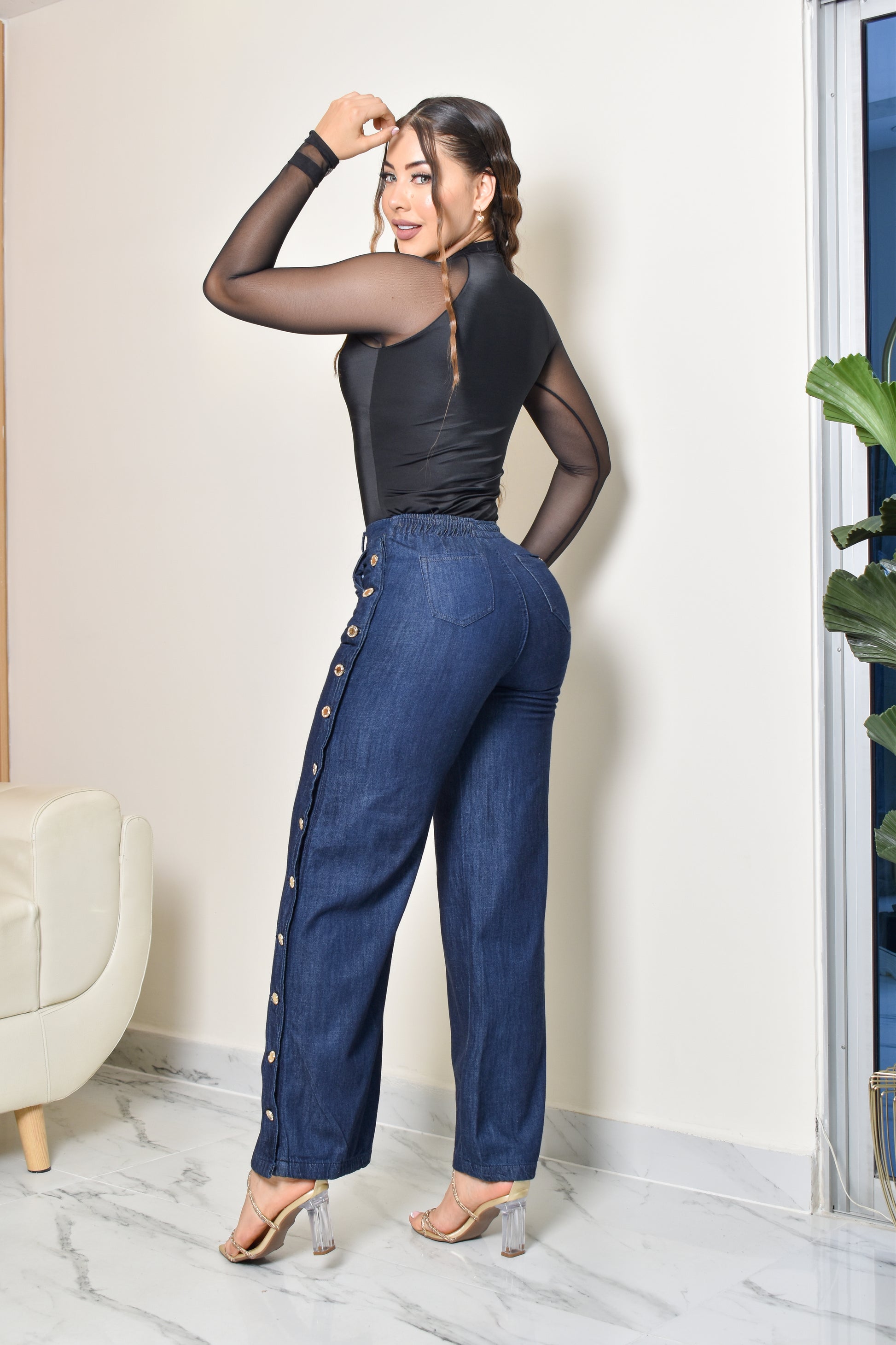 - JEANS EXCLUSIVO, Silueta tendencia comoda, Corte alto